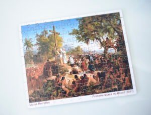 01 quebra-cabeças “1ª Missa no Brasil” de Victor Meirelles 120 peças;