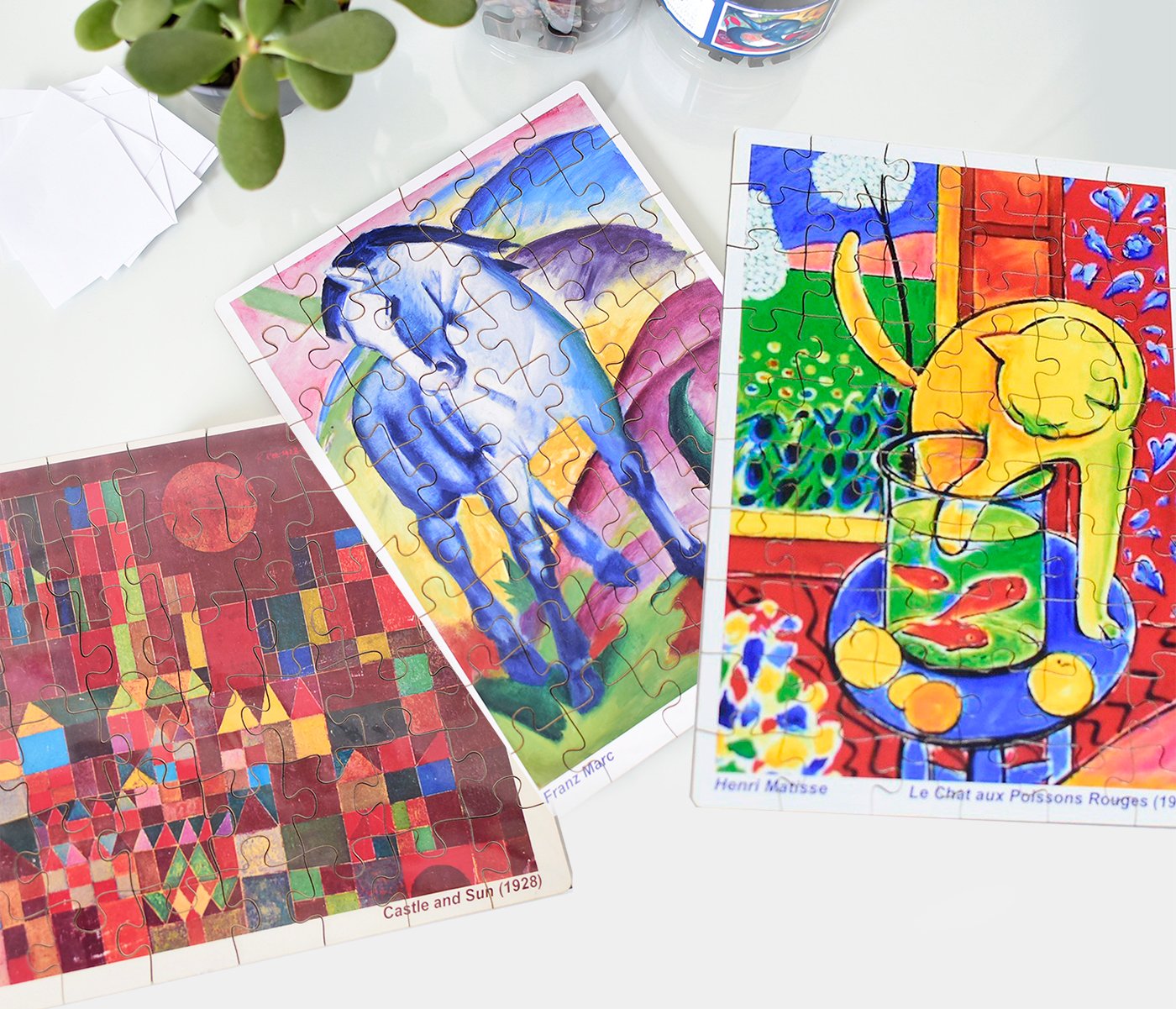 01 quebra-cabeça “O castelo e o Sol” de Paul Klee, tamanho 20x25cm com 48 peças.