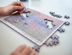 01 quebra-cabeça “Mulher com sombrinha”, com 120 peças;
