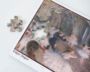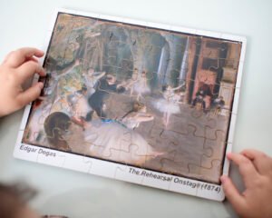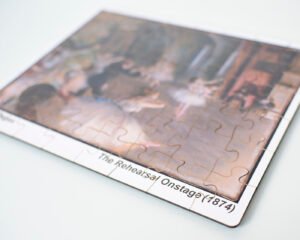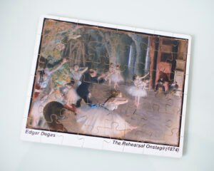 Apresente às crianças este encantador quebra-cabeça de 48 peças retratando a obra-prima ‘Ensaio no palco’ (1874) de Edgar Degas.