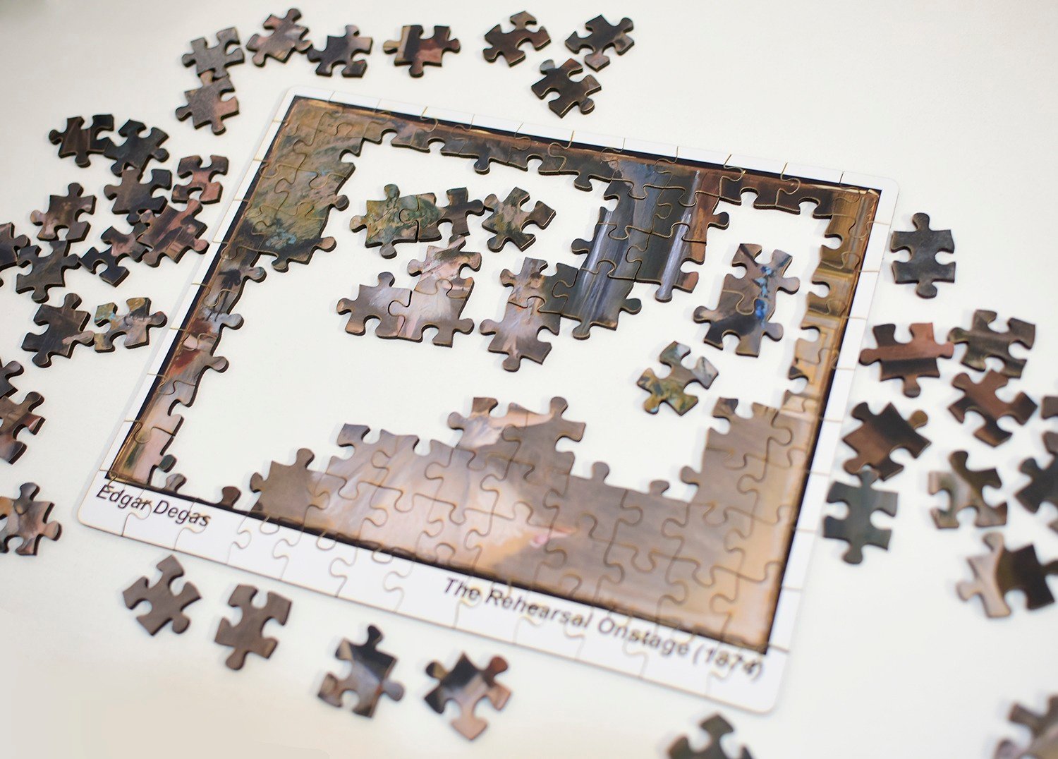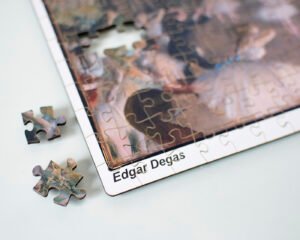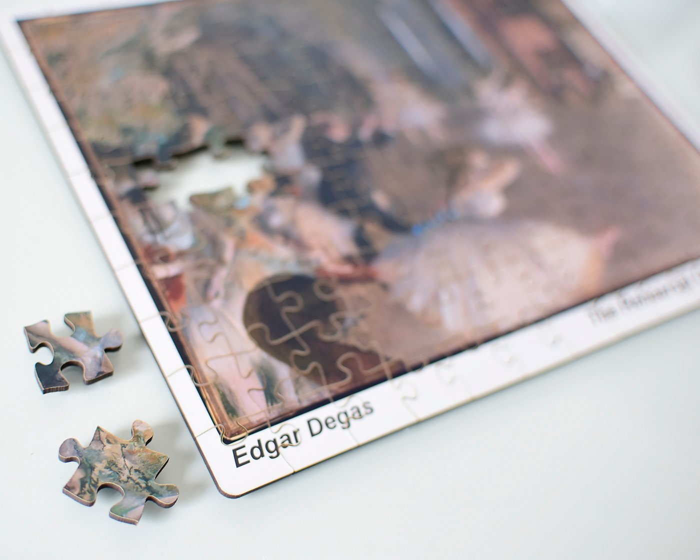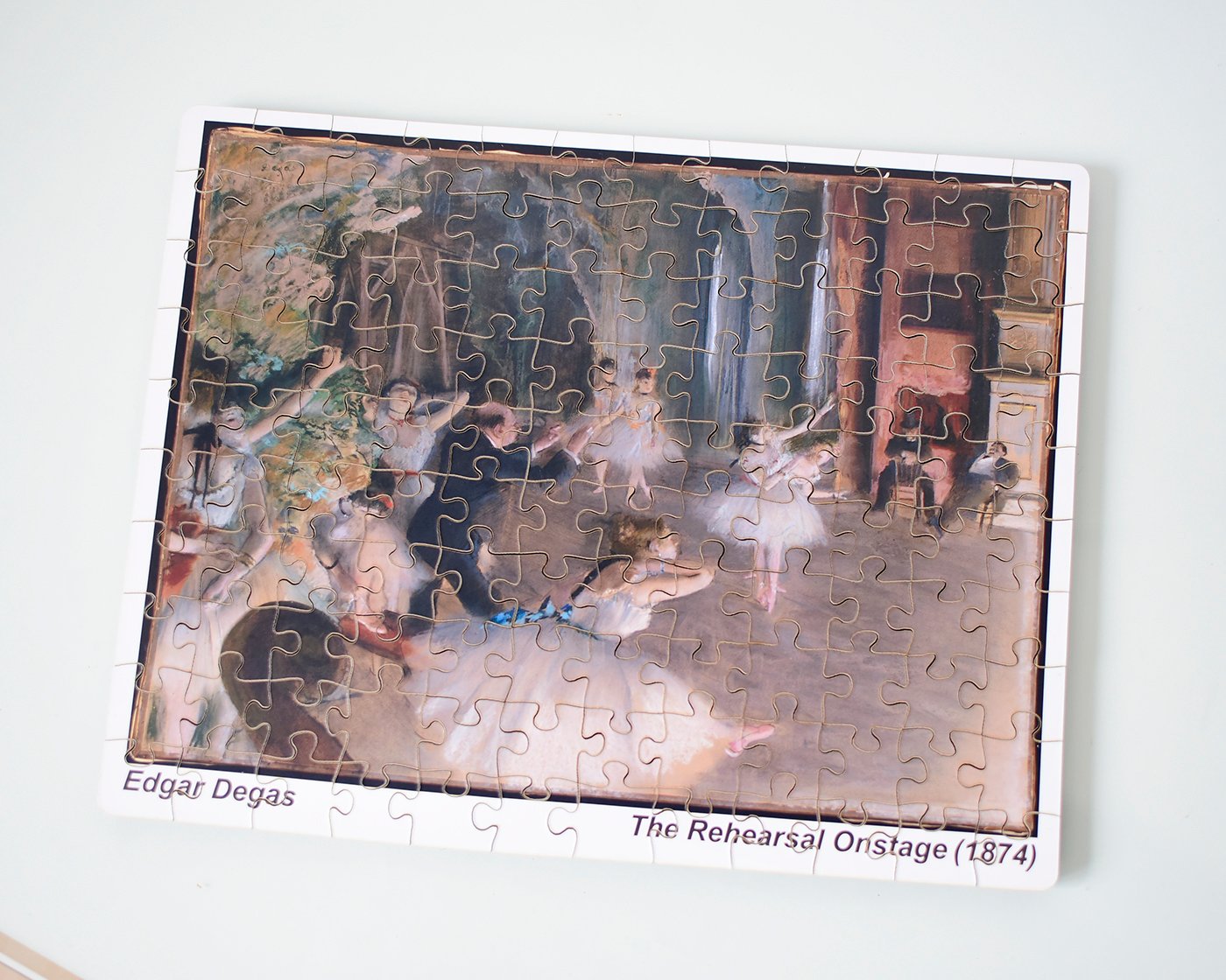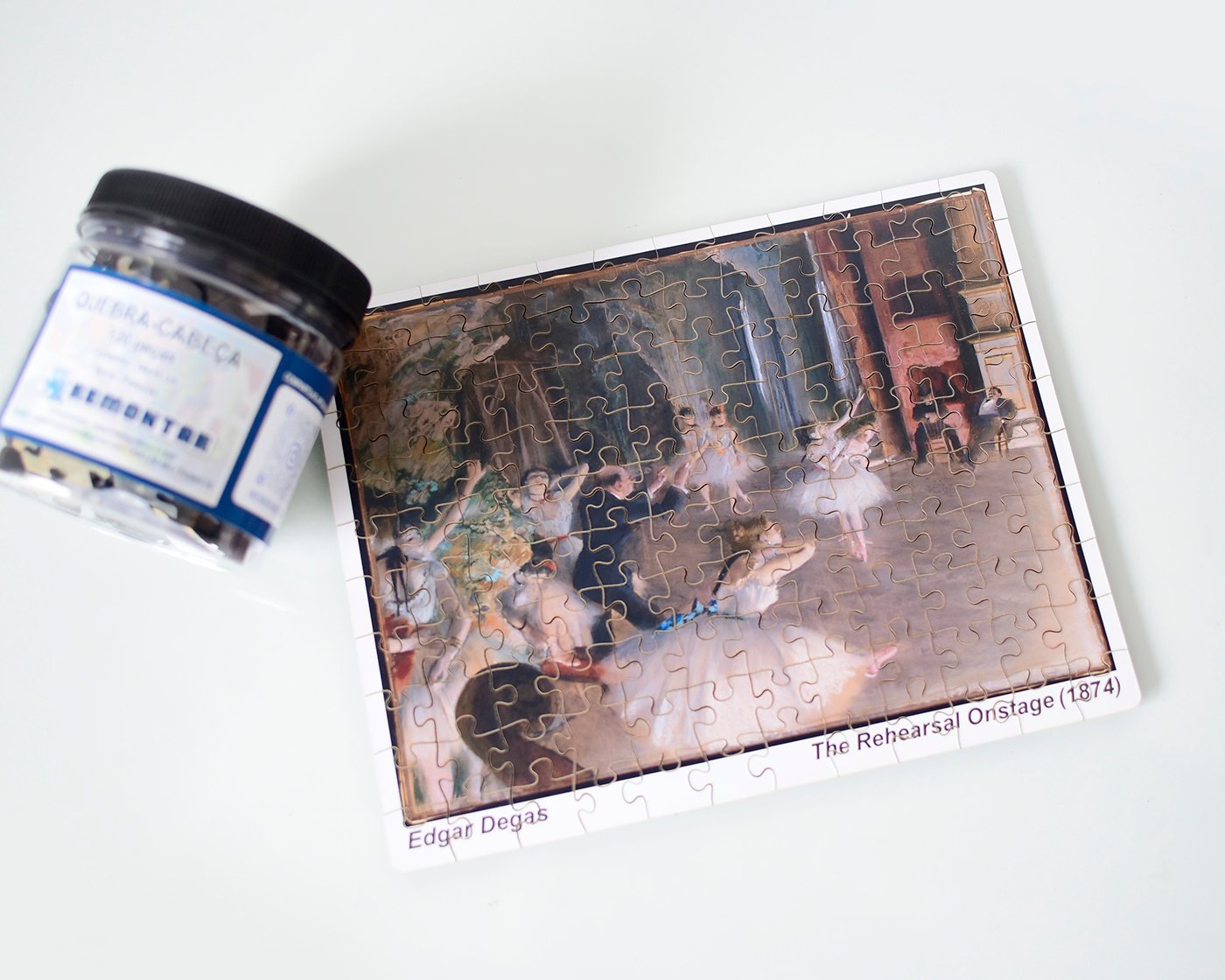Aprecie os detalhes das famosas bailarinas de Degas, com este quebra-cabeças de 120 peças.