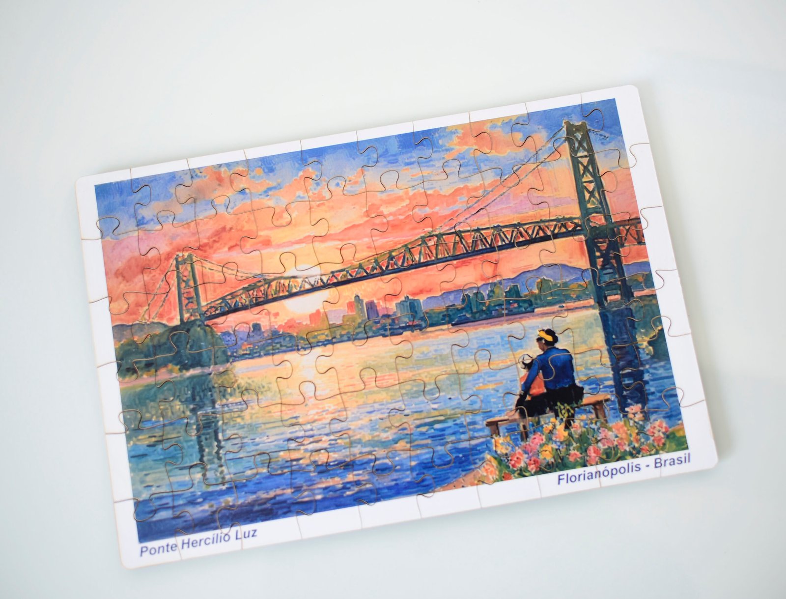 Adicione o Quebra-cabeça Floripa Ponte Hercílio Luz à sua coleção ou ofereça momentos de pura diversão (ótimo para presentear).
