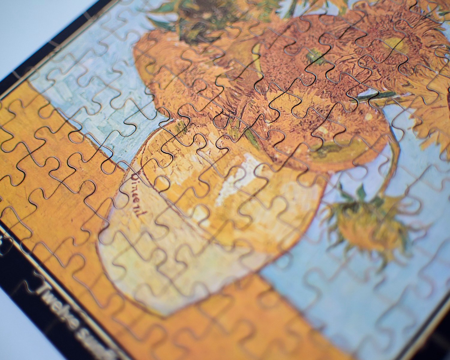 Quebra-cabeça “Twelve sunflowers in a vase”, de Van Gogh com 120 peças.
